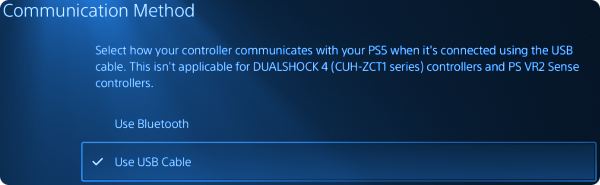 * Wählen Sie **„USB-Kabel verwenden“** und drücken Sie **✕ (Kreuz)** zur Bestätigung.